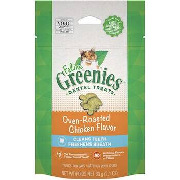 Im in my late 70s and it has been around longer than me Thank you for all your excellent work on behalf of we pet owners. Greenies dental cat treats come in a variety of exciting flavors that your kitty will love. We recommend DentaLife treats for cats with bad breath because they boast a round porous texture that cleans the entire tooth when penetrated.